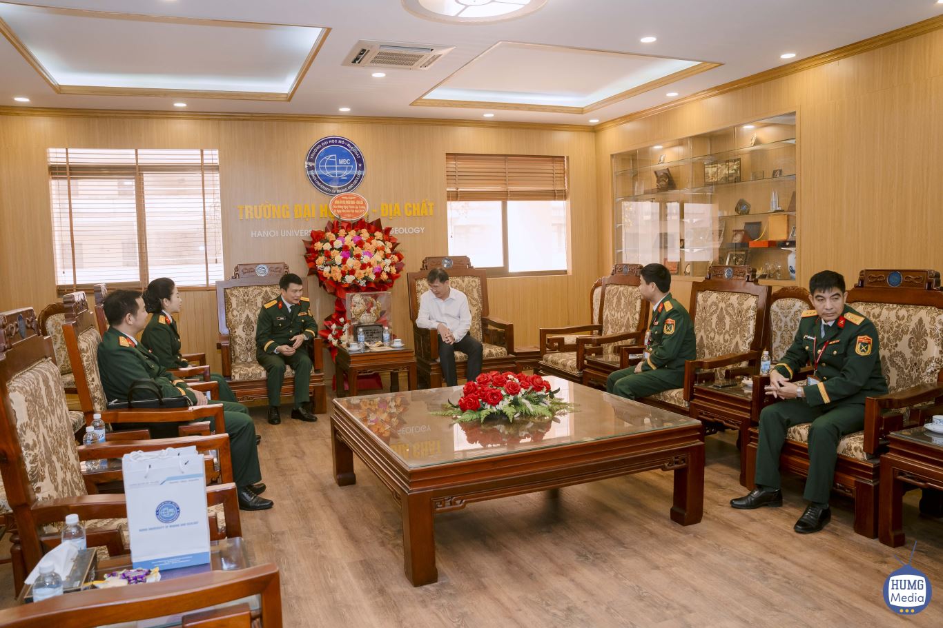 Trong các đơn vị đến chức mừng Trường Đại học Mỏ - Địa chất và khoa GDQP nhân Ngày Nhà giáo Việt Nam có đoàn cán bộ Bộ tư lệnh Pháo binh - Tên lửa do đồng chí Đại tá Lê Đức Hòe – Phó Chính ủy Bộ Tư lệnh Pháo binh - Tên lửa làm trưởng đoàn và các đồng chí Đại tá Mai Thị Ngọc – Cục trưởng Cục Chính trị, đồng chí Nguyễn Trọng Bằng – Phó Trưởng Phòng Cán bộ, Bộ Tư lệnh Pháo binh - Tên lửa cùng đến chúc mừng trường Đại học Mỏ - Địa chất nhân ngày 20/11/2025 Tiếp đoàn của Bộ Tư lệnh Pháo binh - Tên lửa có GS.TS Trần Thanh Hải – Hiệu trưởng, Đồng chí Đại tá Lê Đức Hòe đã đánh giá cao sự hợp tác, gắn kết giữa Trường Đại học Mỏ - Địa chất với Bộ Tư lệnh Pháo binh - Tên lửa mà nòng cốt là Khoa GDQP, đồng chí cũng mong trong thời gian tới hai bên sẽ thường xuyên trao đổi, giao lưu để ngày càng gắn bó chặt chẽ hơn nữa. Tiếp theo đồng chí đến chúc mừng các thầy giáo trong Khoa GDQP nhân ngày Nhà giáo Việt Nam 20/11. Đồng chí đã chúc mừng, thăm hỏi và động viên cán bộ, giáo viên trong Khoa và chỉ đạo Khoa GDQP tiếp tục phát huy hình ảnh anh bộ đội Cụ Hồ, tích cực học tập nâng cao trình độ đáp ứng nhiệm vụ giáo dục trong thời kỳ mới, trau dồi kinh nghiệm để truyền đạt kiến thức, quan điểm đường lối của Đảng về công tác GDQP&AN cho sinh viên, giữ vững truyền thống của Quân đội, truyền thông “CHÂN ĐỒNG-VAI SẮT-ĐÁNH GIỎI-BẮN TRÚNG” của Bộ Tư lệnh Pháo binh - Tên lửa anh hùng và hình ảnh người thầy mặc áo lính trước sinh viên. Khắc phục mọi khó khăn, đoàn kết hoàn thành xuất sắc nhiệm vụ của cấp trên giao cho.